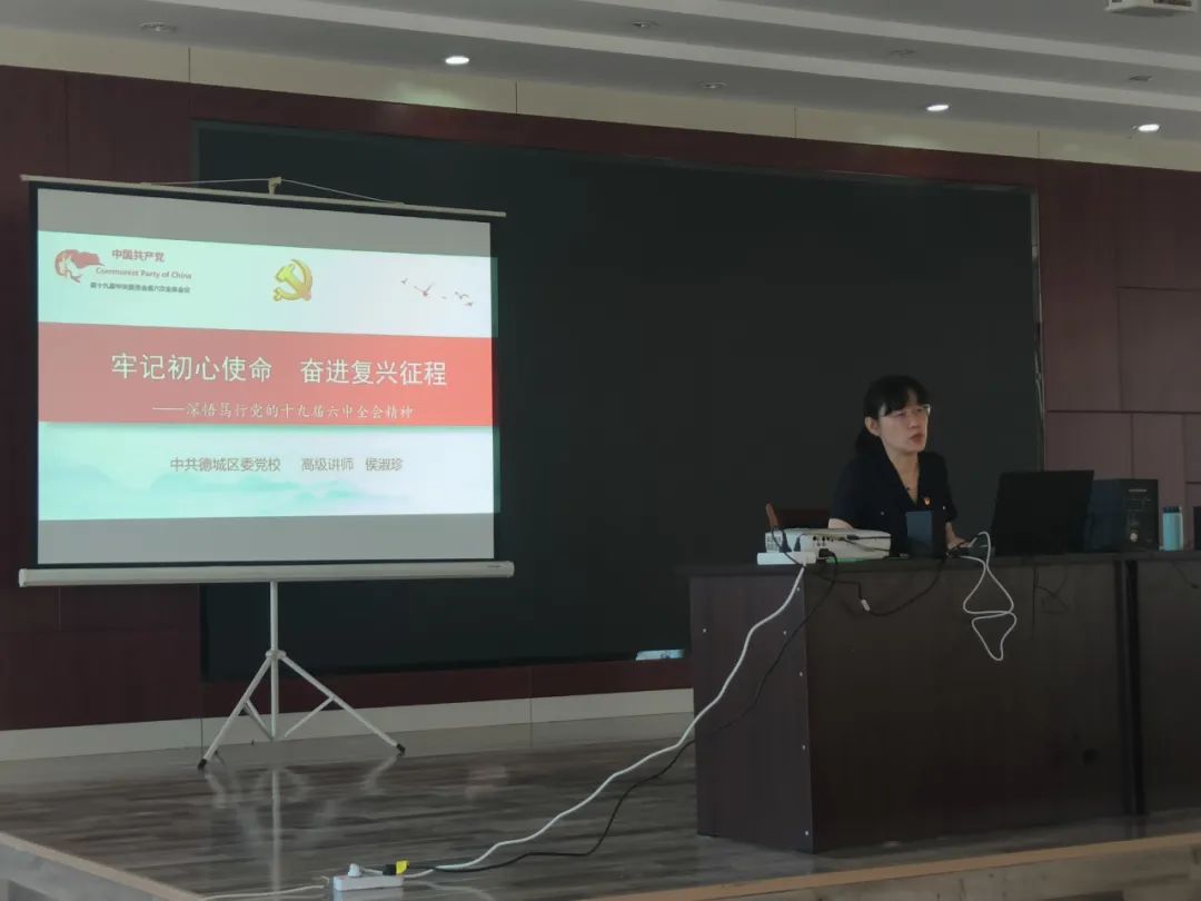 培訓(xùn)中,候淑珍老師詳細(xì)講解《牢記初心使命 奮進(jìn)復(fù)興征程—深悟篤行黨的十九屆六中全會(huì)精神》。她指出,黨的十九屆六中全會(huì)是在我們黨成立100周年的重要?dú)v史時(shí)刻和"兩個(gè)一百年"奮斗目標(biāo)交匯的重大歷史關(guān)頭召開的一次重要會(huì)議,對(duì)于在建黨百年歷史背景下開啟多面建設(shè)社會(huì)主義現(xiàn)代化國(guó)家新征程,在新時(shí)代更好堅(jiān)持和發(fā)展中國(guó)特色社會(huì)主義,具有重要里程碑意義。全會(huì)立足黨和國(guó)家事業(yè)發(fā)展大局,把百年建黨的光榮歷史、光輝歷程,同對(duì)黨和國(guó)家事業(yè)發(fā)展的深邃思考高度結(jié)合起來(lái),把我們黨對(duì)共產(chǎn)黨執(zhí)政規(guī)律、社會(huì)主義建設(shè)規(guī)律、人類社會(huì)發(fā)展規(guī)律的認(rèn)識(shí),同我們奮進(jìn)新征程、建功新時(shí)代、奪取新勝利的使命擔(dān)當(dāng)緊密結(jié)合起來(lái),深刻揭示了"過(guò)去我們?yōu)槭裁茨軌虺晒?,未?lái)我們?cè)鯓硬拍芾^續(xù)成功,對(duì)推動(dòng)全黨進(jìn)一步統(tǒng)一思想、統(tǒng)一意志、統(tǒng)一行動(dòng),團(tuán)結(jié)帶領(lǐng)全國(guó)各族人民奪取新時(shí)代中國(guó)特色社會(huì)主義偉大勝利,具有重大現(xiàn)實(shí)意義和深遠(yuǎn)歷史意義。
