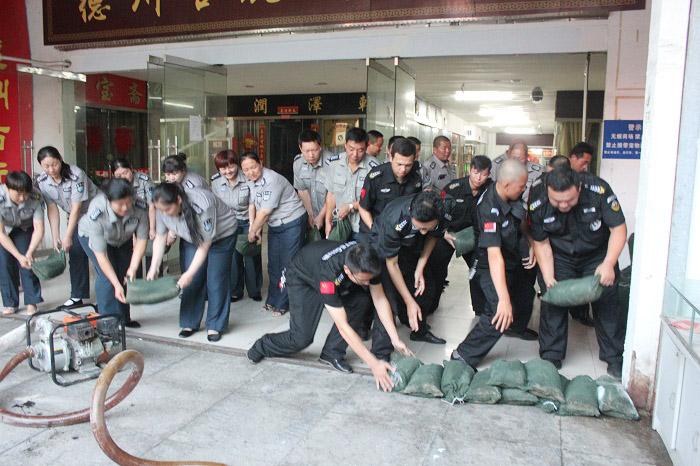 德州市恒威安保服務(wù)有限公司在中國(guó)銀行舉行防汛應(yīng)急演練