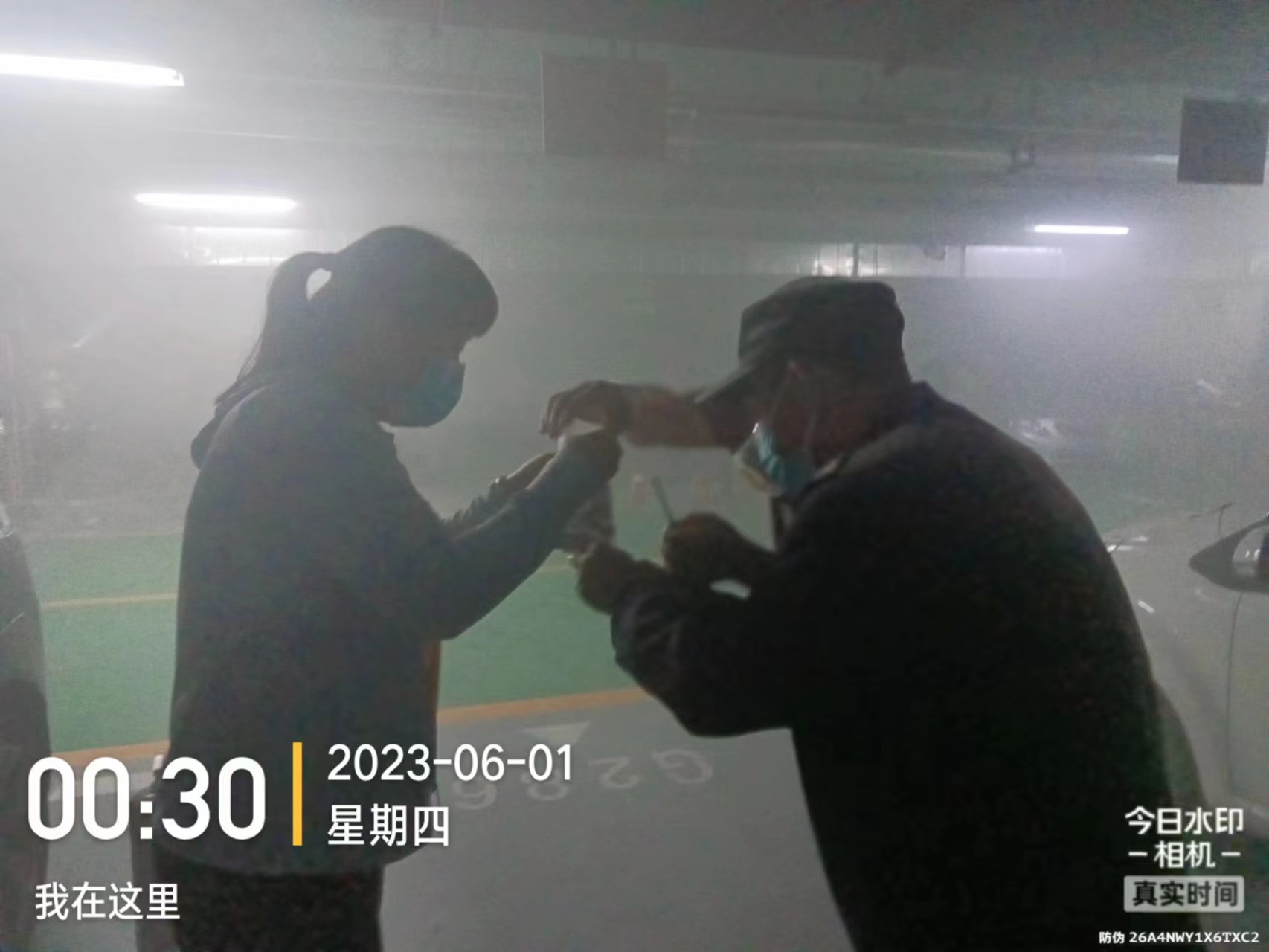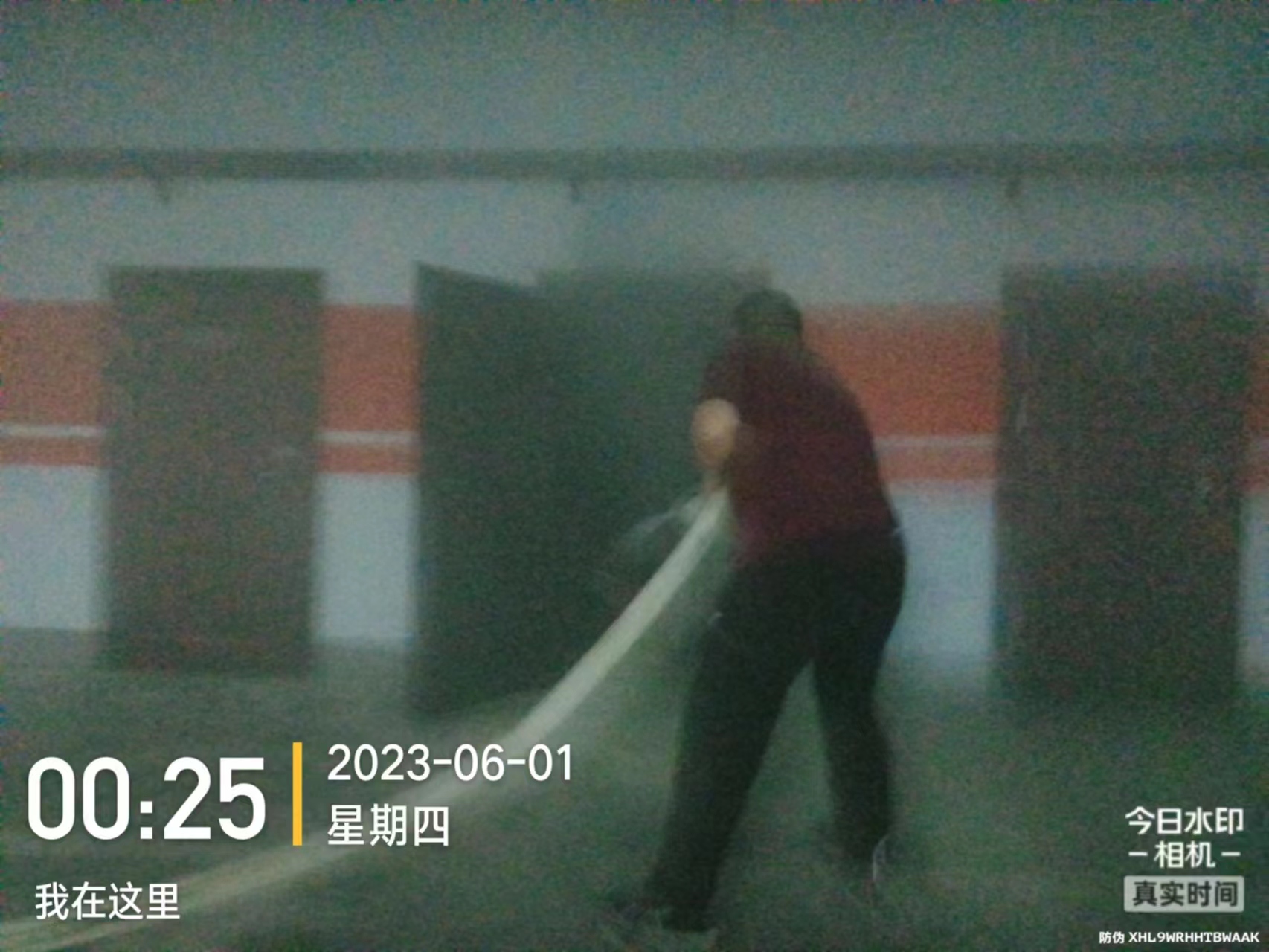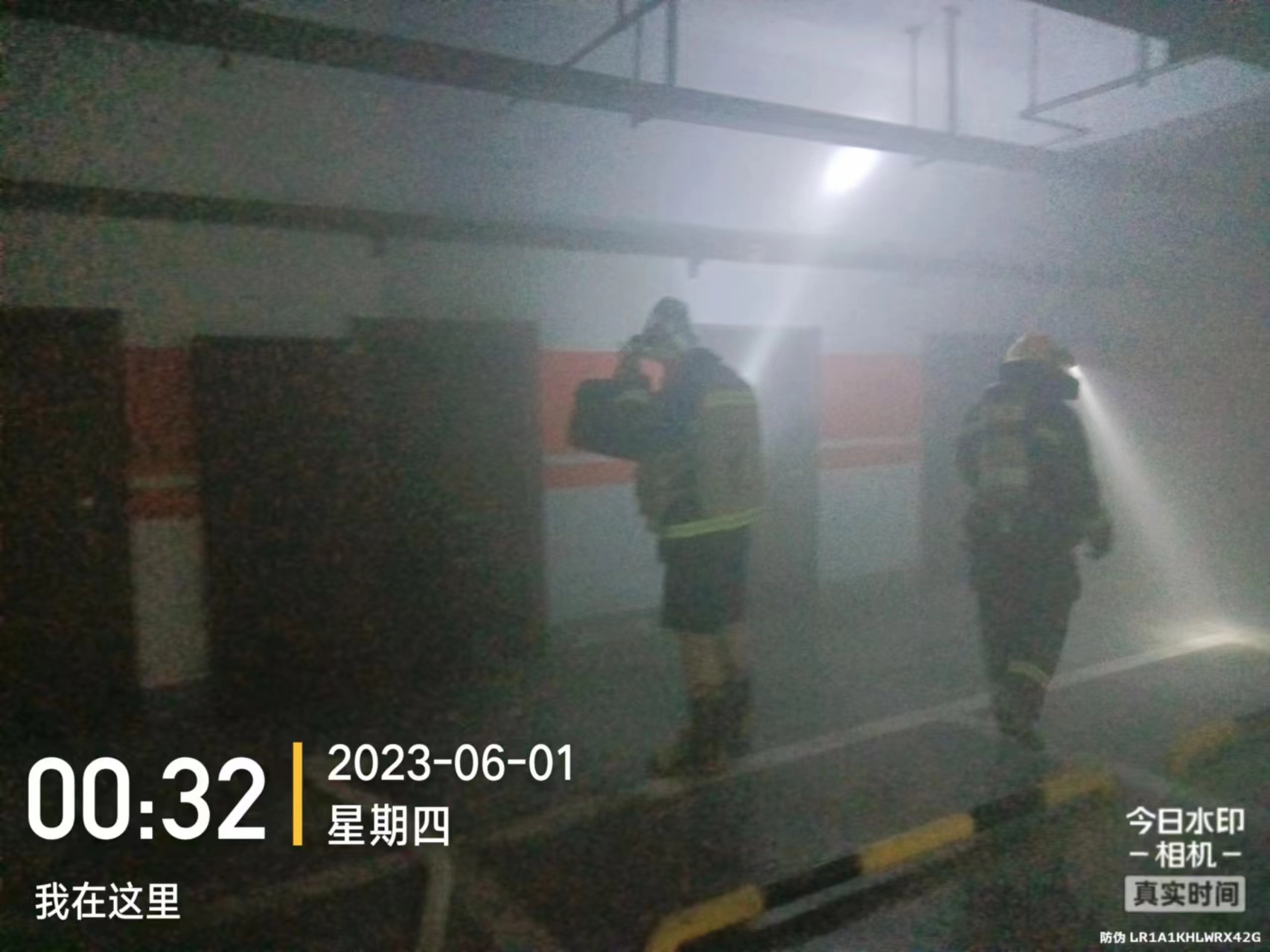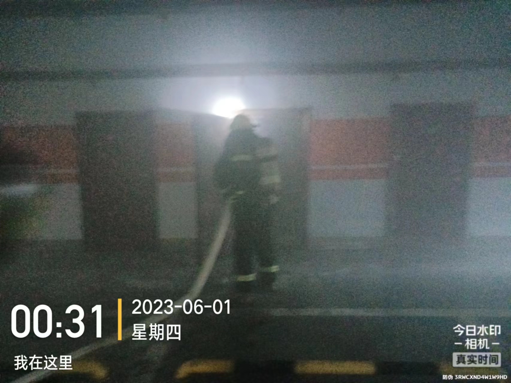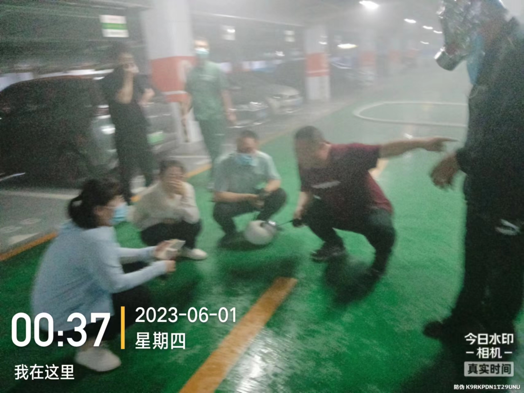 5月31日23點47分,星凱小區(qū)消防監(jiān)控中心火災報警主機接到二期13號樓車庫儲藏間C1316火災探測器報火警,值班員崔會林、于士峰第一時間用對講機呼叫巡邏崗張士剛,告知其立即到前往查看,張士剛發(fā)現(xiàn)C1316儲藏間冒出濃煙并伴有燒焦味道,立刻將情況上報消防監(jiān)控中心,中隊長艾勇峰立即啟動消防應急預案、撥打119火警電話并向單位領導匯報,隨即帶領4名安保人員攜帶滅火器、防煙面具等消防設備趕往火災現(xiàn)場,第一時間切斷該儲藏間電源并通知附近車位業(yè)主轉移車輛,隨即打開儲藏室,佩戴防煙面具進入,用滅火器、水進行滅火,待到消防人員趕到時,明火已滅,火情得到控制,后經消防隊員現(xiàn)場確認,火災警情解除,但按消防要求設置觀察崗值班兩小時防止火災復燃。