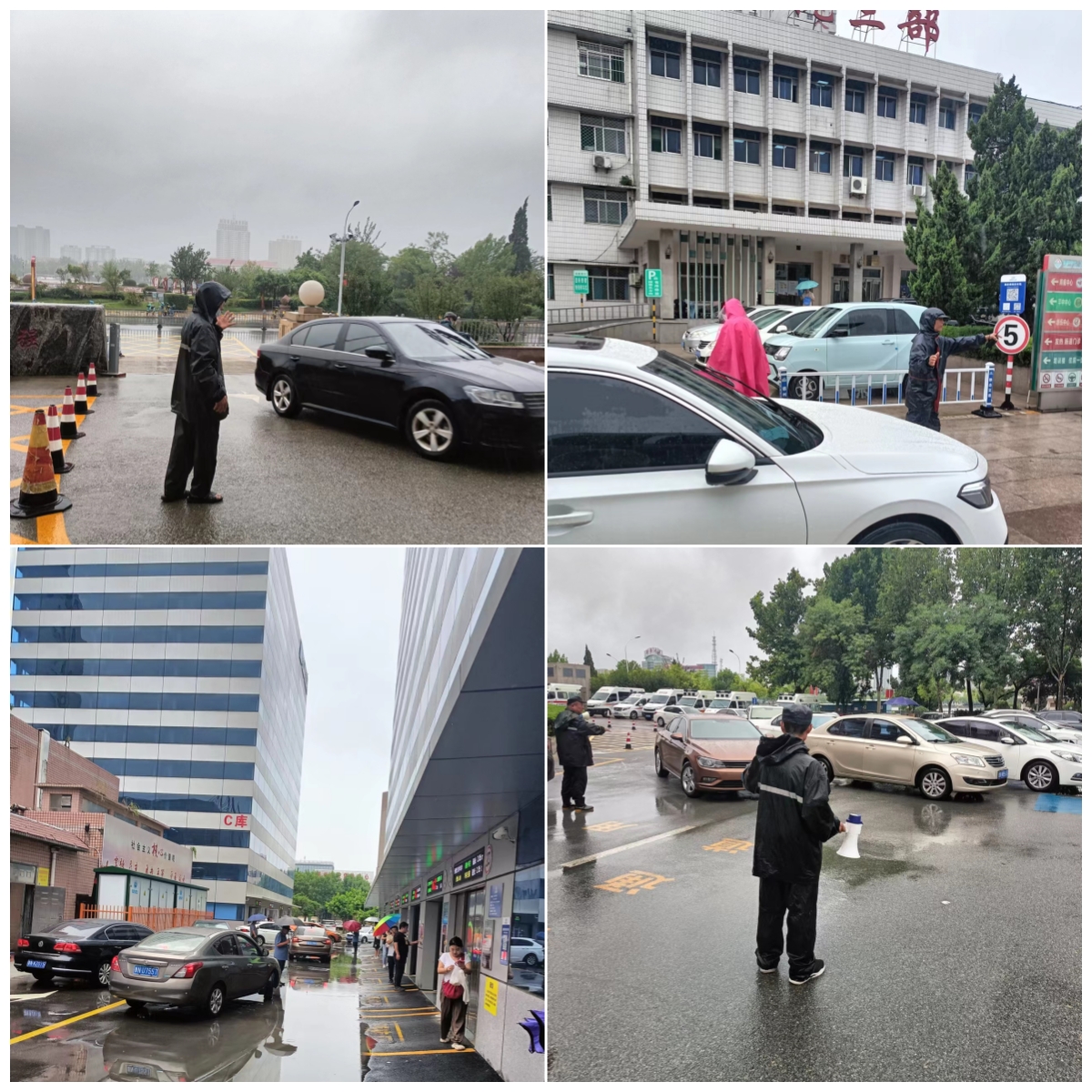 因連日降雨,大酒店停車場(chǎng)場(chǎng)地積水泥濘無法停車,就診車輛全部涌入人民醫(yī)院內(nèi),停車場(chǎng)工作壓力驟增,930個(gè)立體車庫(kù)車位、280個(gè)地面車位全天候不間斷循環(huán)停車,僅7月30日一天,就達(dá)到歷史最高峰八千余車次,面對(duì)空前壓力,隊(duì)員們始終冒雨指揮車輛,堅(jiān)守崗位、盡職盡責(zé),確保就診車輛有序停放,受到院方充分肯定和贊揚(yáng)。