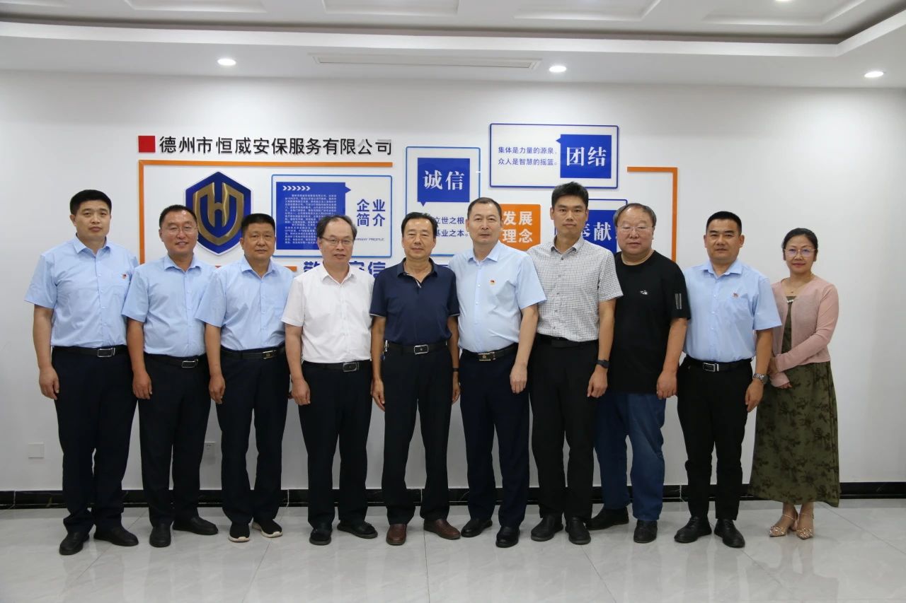 7月9日下午,德州市誠(chéng)信文化建設(shè)團(tuán)隊(duì)蒞臨德州市恒威安保服務(wù)有限公司調(diào)研并指導(dǎo)工作。山東誠(chéng)信文化和綠色發(fā)展主題系列電影總策劃總制片人、德州市發(fā)改委原二級(jí)調(diào)研員高洪玉,德州市發(fā)改委信用科科長(zhǎng)李佳林,德州市誠(chéng)信文化促進(jìn)會(huì)常務(wù)副會(huì)長(zhǎng)、德州學(xué)院教授、文化學(xué)者黃金元,知名編劇、德州市電影家協(xié)會(huì)主席劉曉東,德州市誠(chéng)信文化促進(jìn)會(huì)秘書長(zhǎng),德州市電影家協(xié)會(huì)秘書長(zhǎng)王玉心。公司黨支部書記、總經(jīng)理王新衛(wèi)、副總經(jīng)理王洪林、高印東陪同調(diào)研。