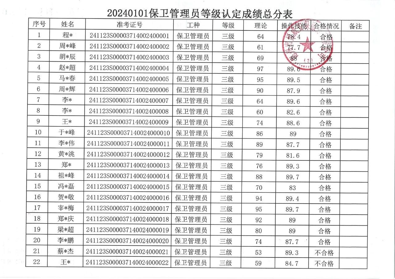 德州市首批保衛(wèi)管理員(三級(jí))職業(yè)技能等級(jí)認(rèn)定成績(jī)公示: