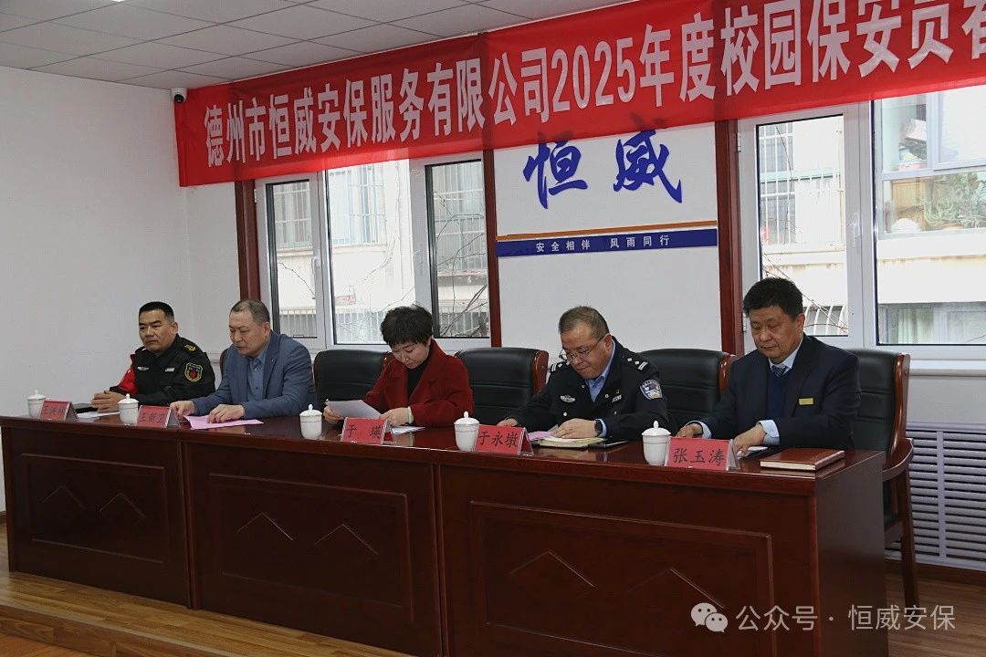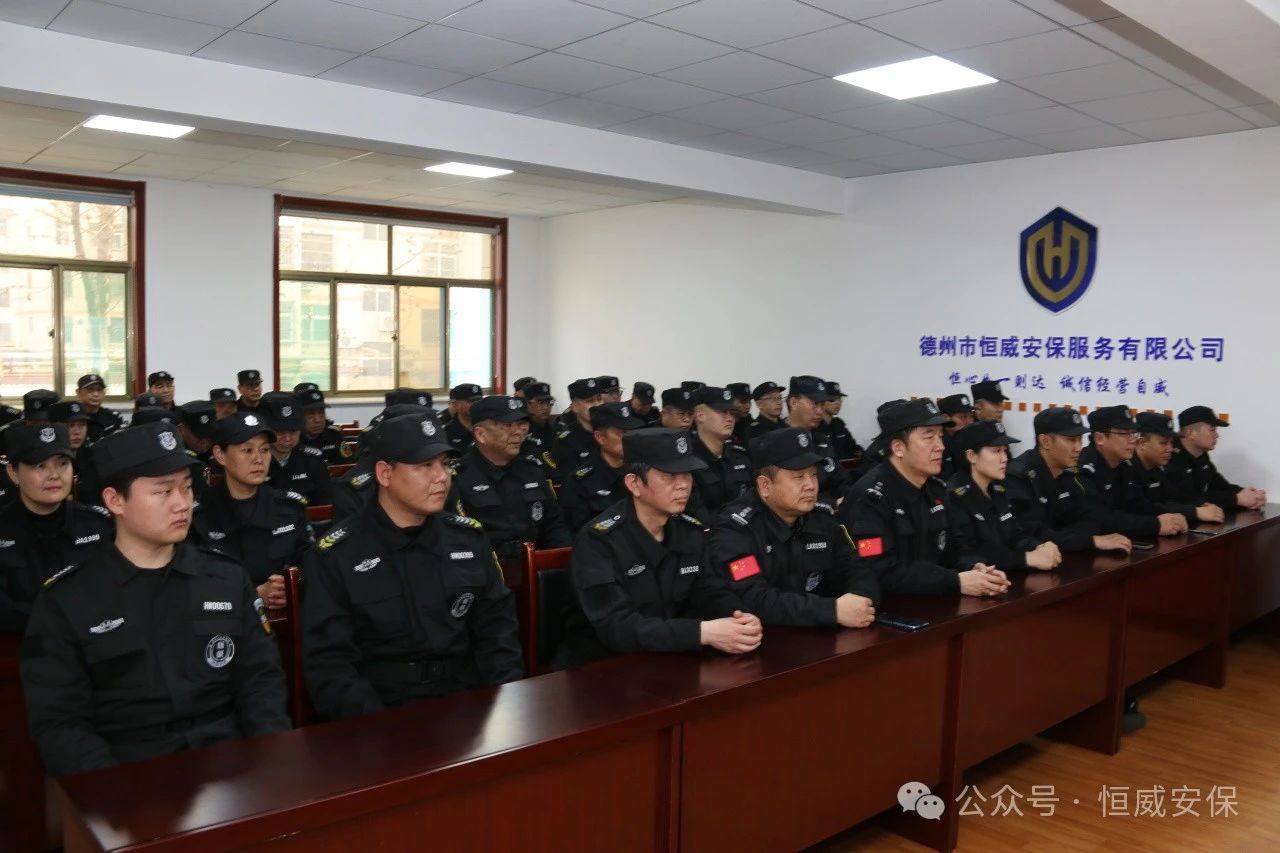 為進(jìn)一步提升校園安全防范能力,筑牢師生安全屏障,2月28日下午,德州市恒威安保服務(wù)有限公司2025年度校園保安員春季專(zhuān)題培訓(xùn)開(kāi)班儀式隆重舉行。區(qū)教體局副局長(zhǎng)于瑛、區(qū)公安分局治安大隊(duì)大隊(duì)長(zhǎng)于永墩、德州市恒威安保服務(wù)有限公司總經(jīng)理王新衛(wèi)等領(lǐng)導(dǎo)出席儀式,來(lái)自全區(qū)各中小學(xué)、幼兒園的60余名校園保安員代表參加活動(dòng)。會(huì)議由公司副總經(jīng)理張玉濤主持。