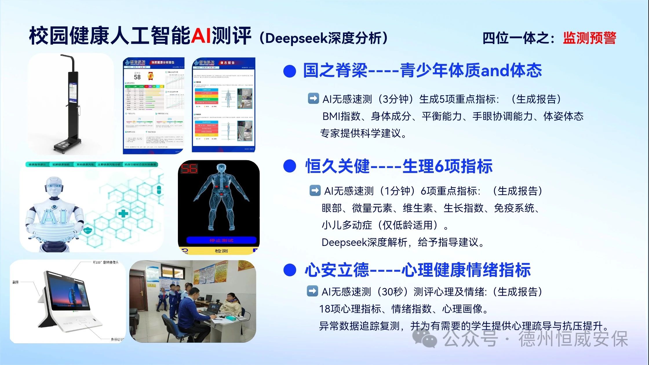 會(huì)上,公司恒心AI心理測(cè)評(píng)中心負(fù)責(zé)人趙海峰,就主題為“恒久關(guān)健·心安立德”的“平安·健康校園行”活動(dòng)方案進(jìn)行了詳細(xì)闡述。方案明確提出,通過(guò)AI科技賦能學(xué)生身心健康測(cè)評(píng)與提升工作,助力完善“四位一體”學(xué)生身心健康工作體系。此外,活動(dòng)還精心規(guī)劃了校園火災(zāi)逃生演練、演練以及升級(jí)版校園防暴恐應(yīng)急演練等一系列大型演練項(xiàng)目。