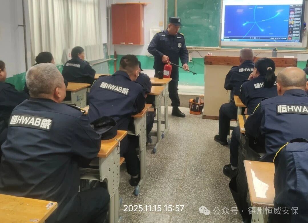 培訓(xùn)緊密結(jié)合校園安保工作實(shí)際,內(nèi)容分為理論講授與技能實(shí)操兩大模塊。在理論培訓(xùn)部分,課程聚焦于校園保安員的基本禮儀規(guī)范、文明用語及來訪登記流程,著力塑造專業(yè)、嚴(yán)謹(jǐn)?shù)膷徫恍蜗?。重點(diǎn)開展的消防安全知識培訓(xùn),深入講解了“三懂四會”的核心要求,并詳細(xì)演示了滅火器、消防栓等器材的正確使用方法。培訓(xùn)教官強(qiáng)調(diào),全體保安員必須時(shí)刻保持警惕,善于發(fā)現(xiàn)并及時(shí)消除各類火災(zāi)隱患,做到“防患于未然”;同時(shí),在面對突發(fā)火情時(shí),要能夠冷靜判斷、靈活處置,最大限度地保障師生生命安全與財(cái)產(chǎn)安全。
