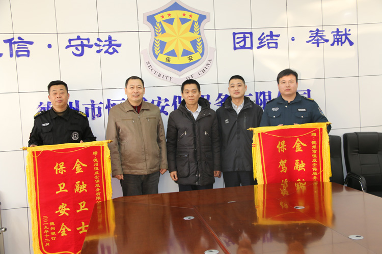 德州銀行領(lǐng)導(dǎo)蒞臨德州市恒威安保服務(wù)有限公司 商洽工作并贈(zèng)送“金融衛(wèi)士、保衛(wèi)安全”錦旗