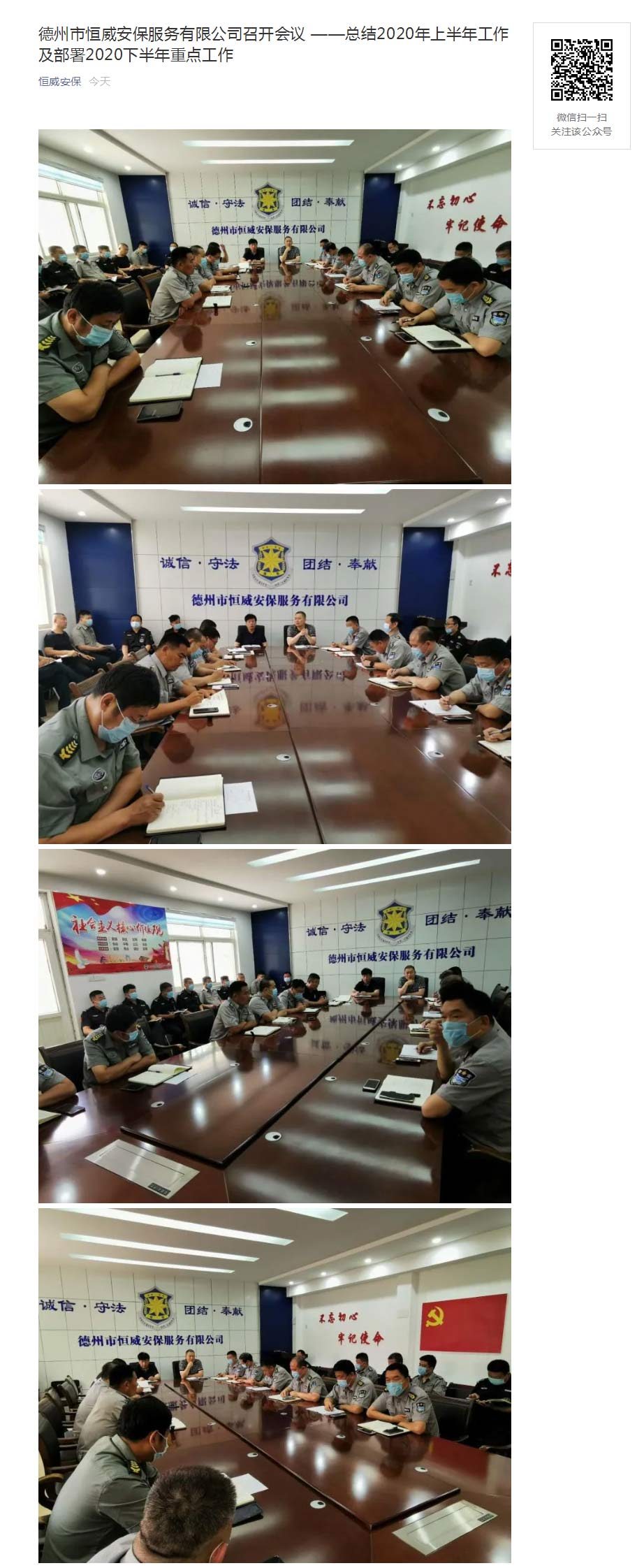 德州市恒威安保服務(wù)有限公司召開會議 ——總結(jié)2020年上半年工作及部署2020下半年重點工作