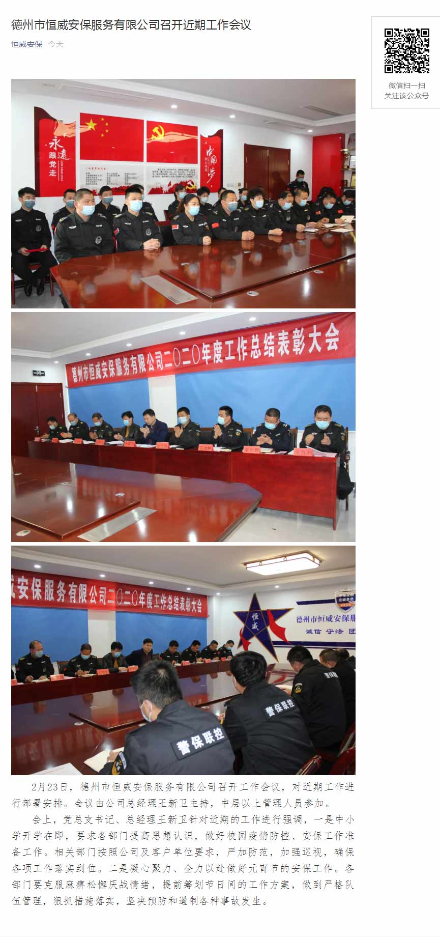 德州市恒威安保服務(wù)有限公司召開近期工作會議