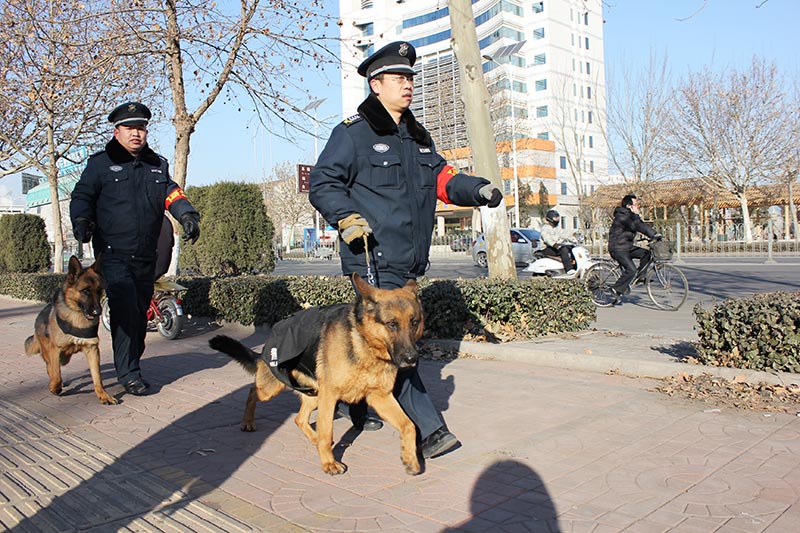 犬防大隊組以培養(yǎng)、訓(xùn)練護(hù)衛(wèi)犬服務(wù)客戶為主,現(xiàn)有專業(yè)訓(xùn)犬員20名,專業(yè)防爆犬兩條,優(yōu)良護(hù)衛(wèi)犬30余條,與臨盤油田、德森集團(tuán)、東營油田等單位簽訂長期服務(wù)合同,派駐護(hù)衛(wèi)犬對其實行追蹤、警戒、巡邏等各種安全保衛(wèi)任務(wù),廣泛地應(yīng)用到巡邏保衛(wèi)工作。搜爆犬由公安部南京警犬研究所在警犬頸部植入編號芯片后備案配發(fā),針對“黑火藥、TNT、硝酸”等爆炸物品的特殊氣味進(jìn)行搜索示警,可承擔(dān)大型會議場所、交通公具、機(jī)場、車站等危爆物品的安檢工作,也可有效應(yīng)對“炸彈威脅”等各類反恐行動。同時還提供犬只代訓(xùn)服務(wù),同時充分利用有利資源。